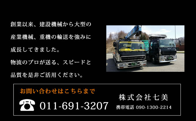 建設機械、地盤改良の機械、一般貸切貨物、全国輸送